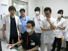 当院は地域で唯一の総合病院であるためこの地域で発生する全ての疾患を経験することができます。初診外来が終了する午前11時以降はERでの診療が中心となり,そのためER研修では必然的に様々な疾患のprimary careを経験することになります。更に特別プログラムとして、ER研修で遭遇した症例を用いた「臨床推論」と、各領域の専門医が複数人参加して行う”研修医がERで経験した全症例”の「ER検討会」をそれぞれ週一回開催しています。いずれの会も雰囲気は和やかで自由な発言,強烈なジョークが飛び交う中,知識が定着していくのを実感できます。