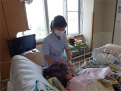 当病棟には、新生児から御高齢の方まで幅広い年齢層の方が入院されます。糸魚川で唯一出産ができる病棟で、産前から産後のケアを助産師がサポートしています。明るく清潔な療養環境の提供と、患者様一人一人に合った看護をスタッフで考え実践しています。助産師、看護師、補助員のチームワークが良い職場です。