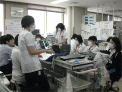 人工透析室は、日々透析に通院される患者さまはもちろん、入院し急性期の治療をしながら透析を受けられる方、認知症や生活動作の低下した方々が事故や合併症を起こさないよう安全な看護を提供できるよう努めています。