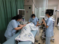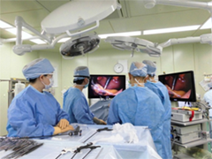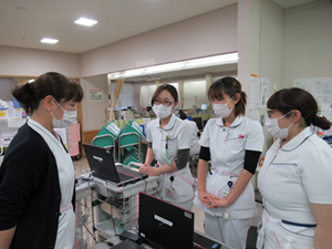 手術室、内視鏡室では医療の最前線ともいえる場面で看護の提供をしています。医師をはじめ多くの職種の方々と協力し合い、チームで医療を提供しています。
